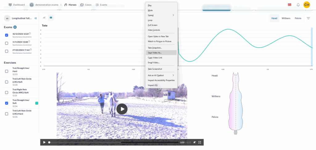 During your examinations with EQUISYM®, you have the option of recording videos and downloading them to send to your client or anyone else.
